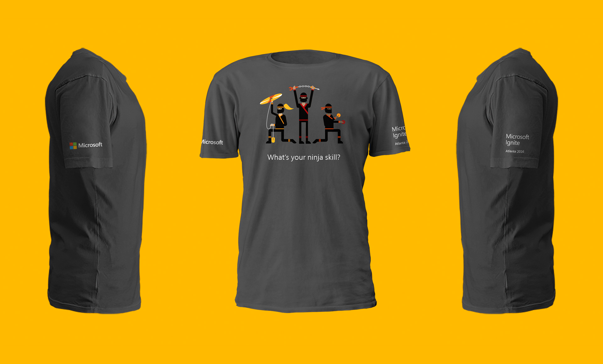 My roles included art direction, design, and animation of the creative. I also created the Microsoft Ignite ninja, which became the unoffical mascot for the event. In addition to being featured in digital media, the ninja was used on the official t-shirt, as well as the papercraft toy given to attendees.